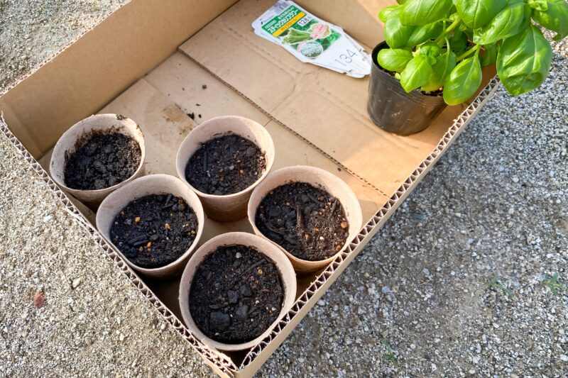 苗のダンボール箱にバジルが入っているのはまた奥さんの衝動買い。本当に維持管理してうまく育てられるでしょうか...。