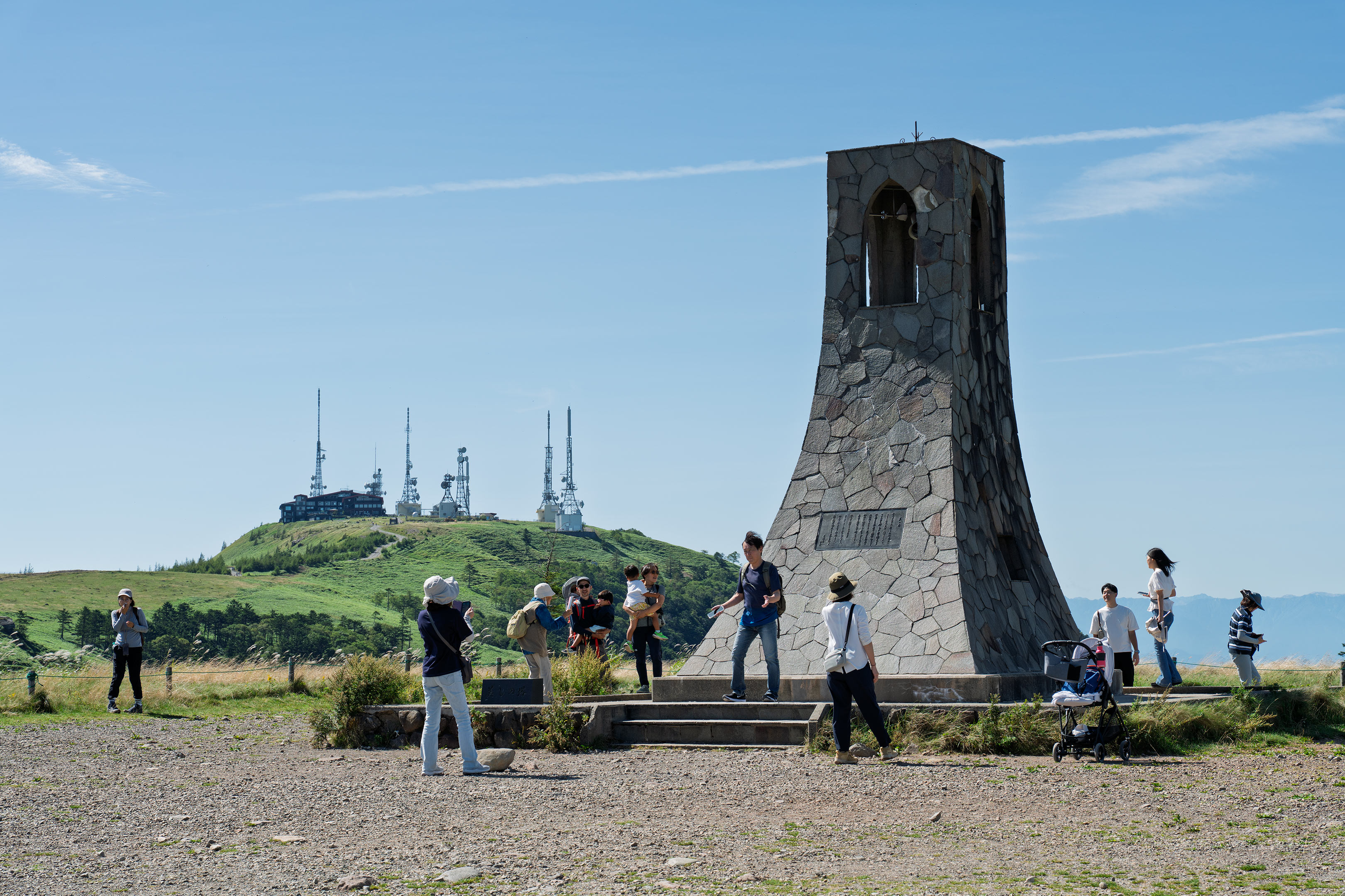 美ヶ原は標高がちょうど2,000メートルと高所にあり、更には360度パノラマというロケーションですから、その見通しの良さを利用しようとTVやラジオのアンテナがここに集中し長野県の主要市町村へ電波を届けているのです。前々からぜひあそこまで歩いて行ってみたいと思っていたところでしたが、近くに見えて意外と距離があるというのはこの場所を歩いて誰しも感じる点かと。