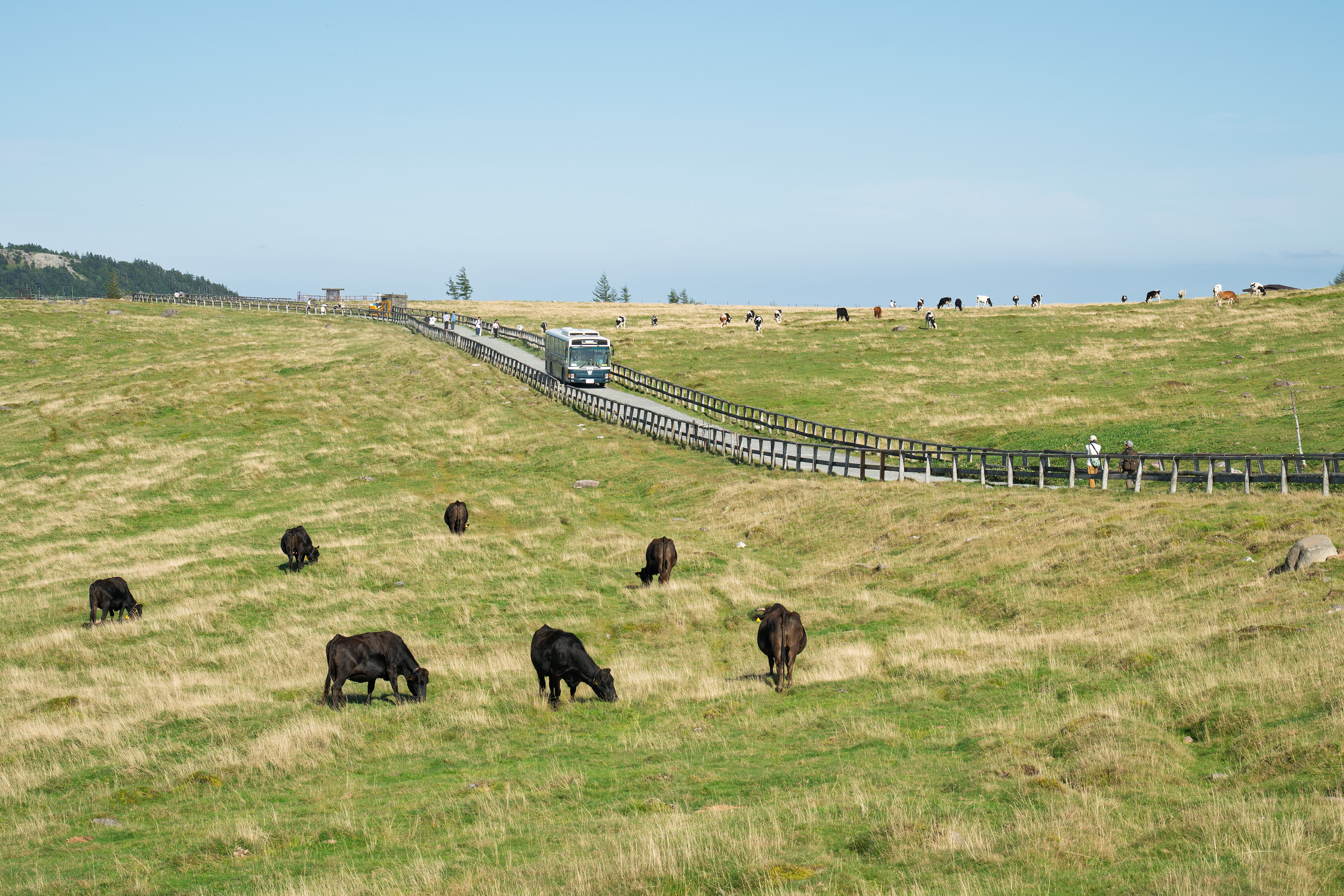 夏季は上の写真のように牛が放牧されており、大自然の中の一本道をバスが走っていくというなんともほのぼのした景色が成立します。