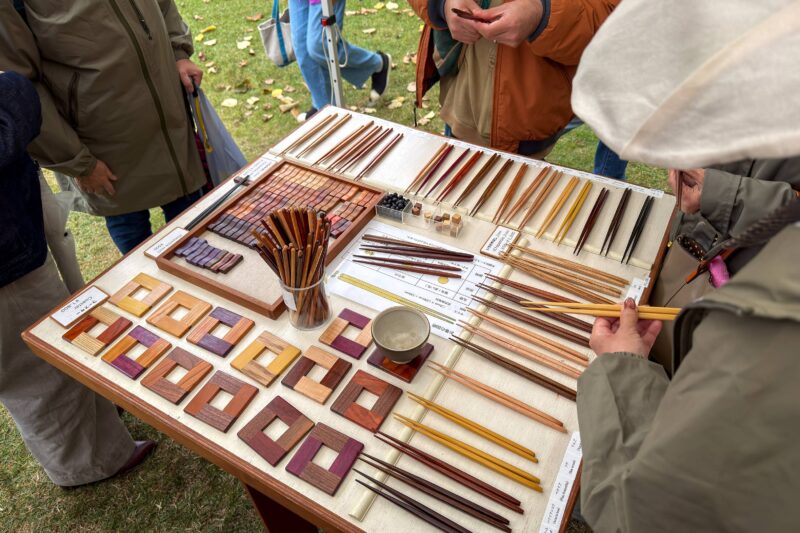 私としてはやはり木工細工のブースに鼻が効くわけでして、購入の有無はさておき作品の作りの良さに惚れ惚れしながら眺めます。気に入ったものがあれば購入すれば良いですが、その先にまた同じようなブースが待っていて、そちらであればさらにお気に入りが見つかるかも?なんて考え始めるとますます判断が難しくなるのがこうしたイベント。