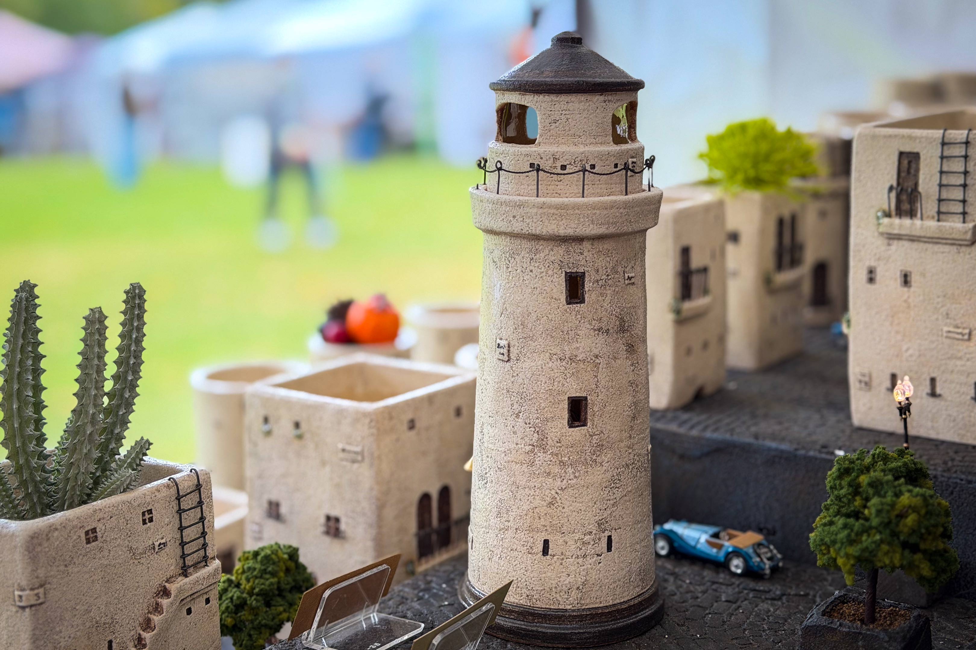 写真撮影の許可を頂こうと声をかけると作家さんは気を利かせてくれて、「こちらから撮ったほうが小さな街並み感が出ますよ」とブース内に入らせてくれました。誠にありがとうございます。