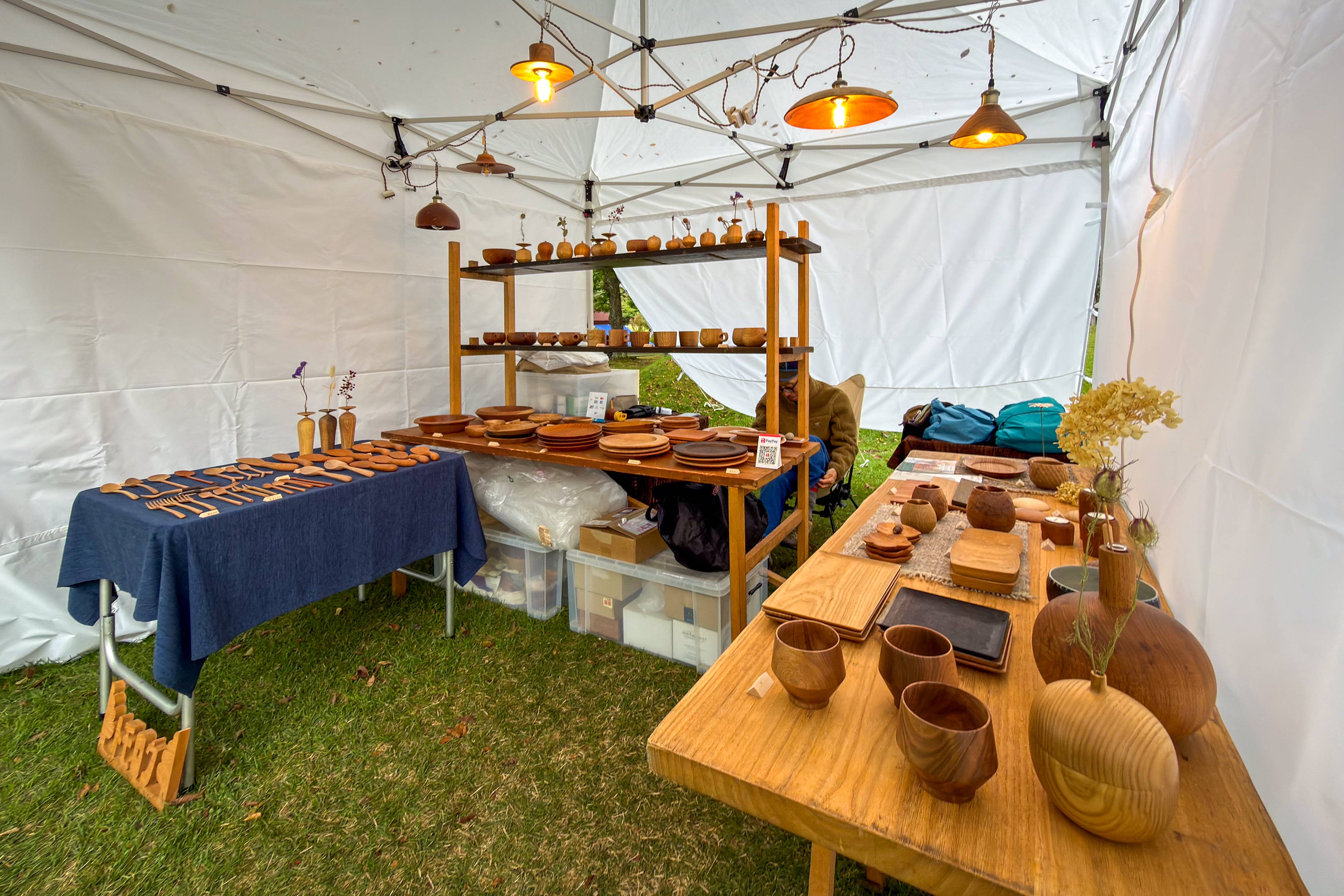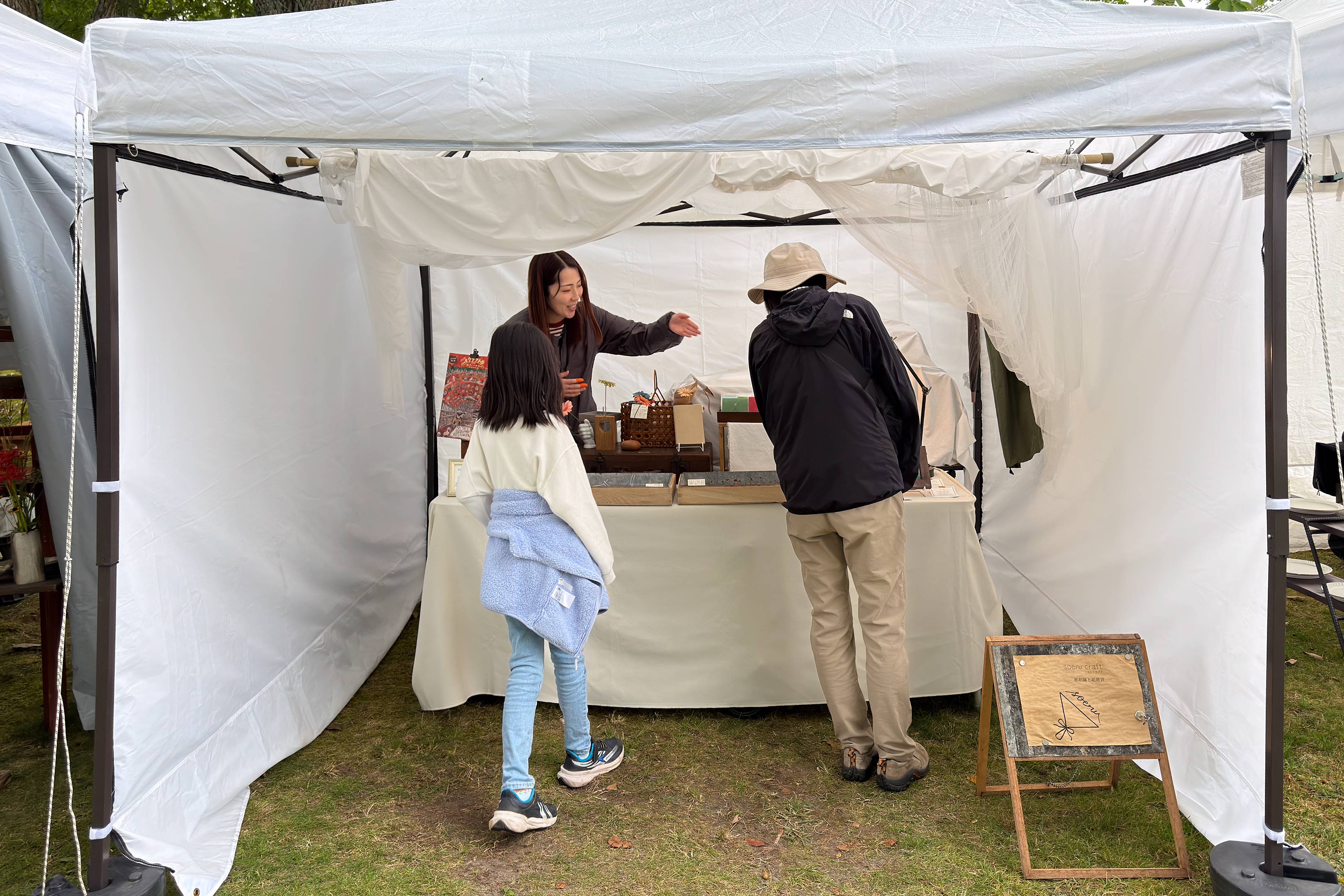 ただこの日は雨でしたから全てのブースが白いテントを使っていましたね。多くのブース共通のテント形状でしたので恐らく出展者の方も雨天時は主催者からテントを借りたりするのではないかと思います。