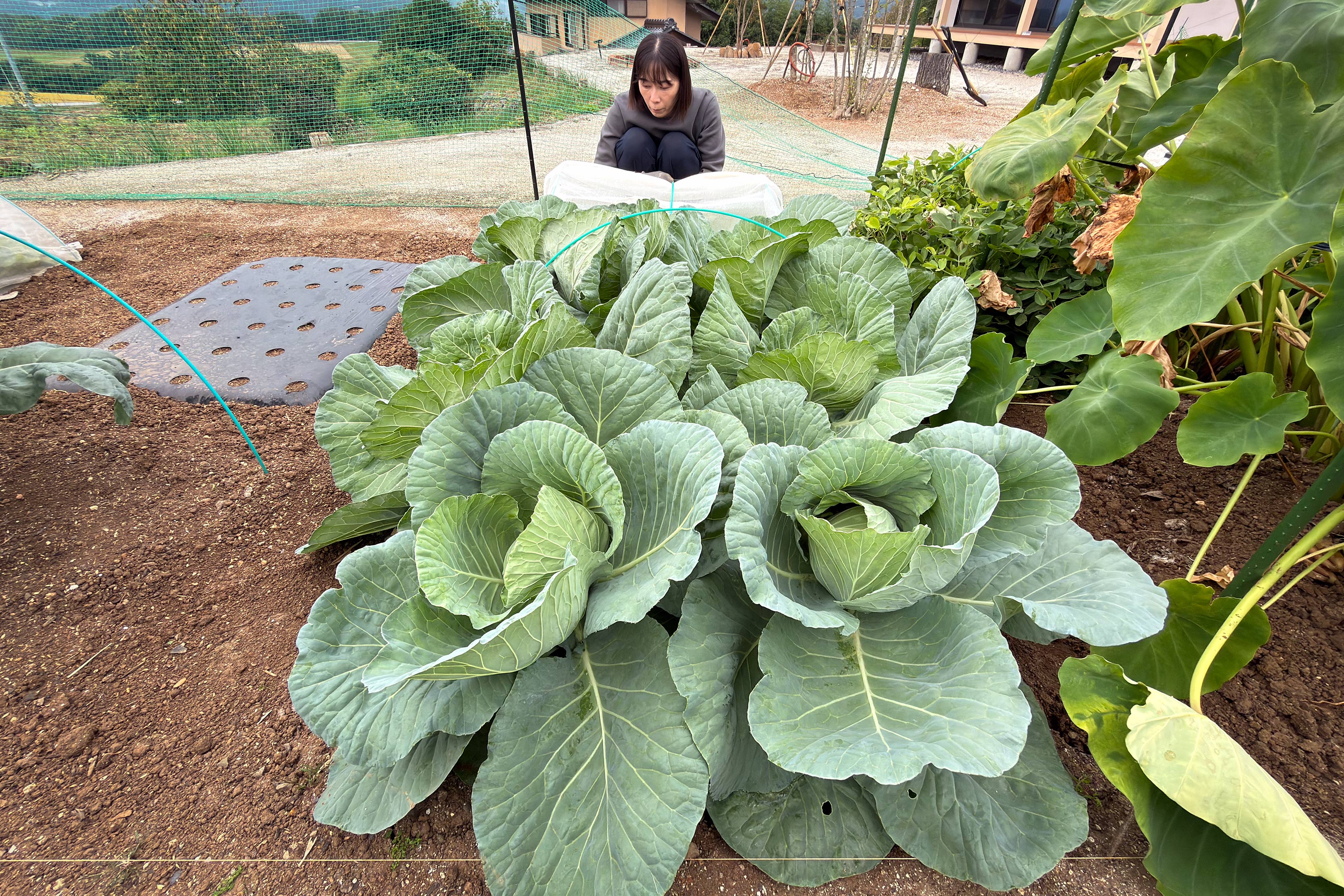 こちらは見るからに栄養たっぷりのキャベツ。畑の脇の道を歩く人から「プロレベルじゃないですか!」と言われたくらい。全ては昨年まで参加していた東京の体験農園で教えてもらったテクニックのおかげです。