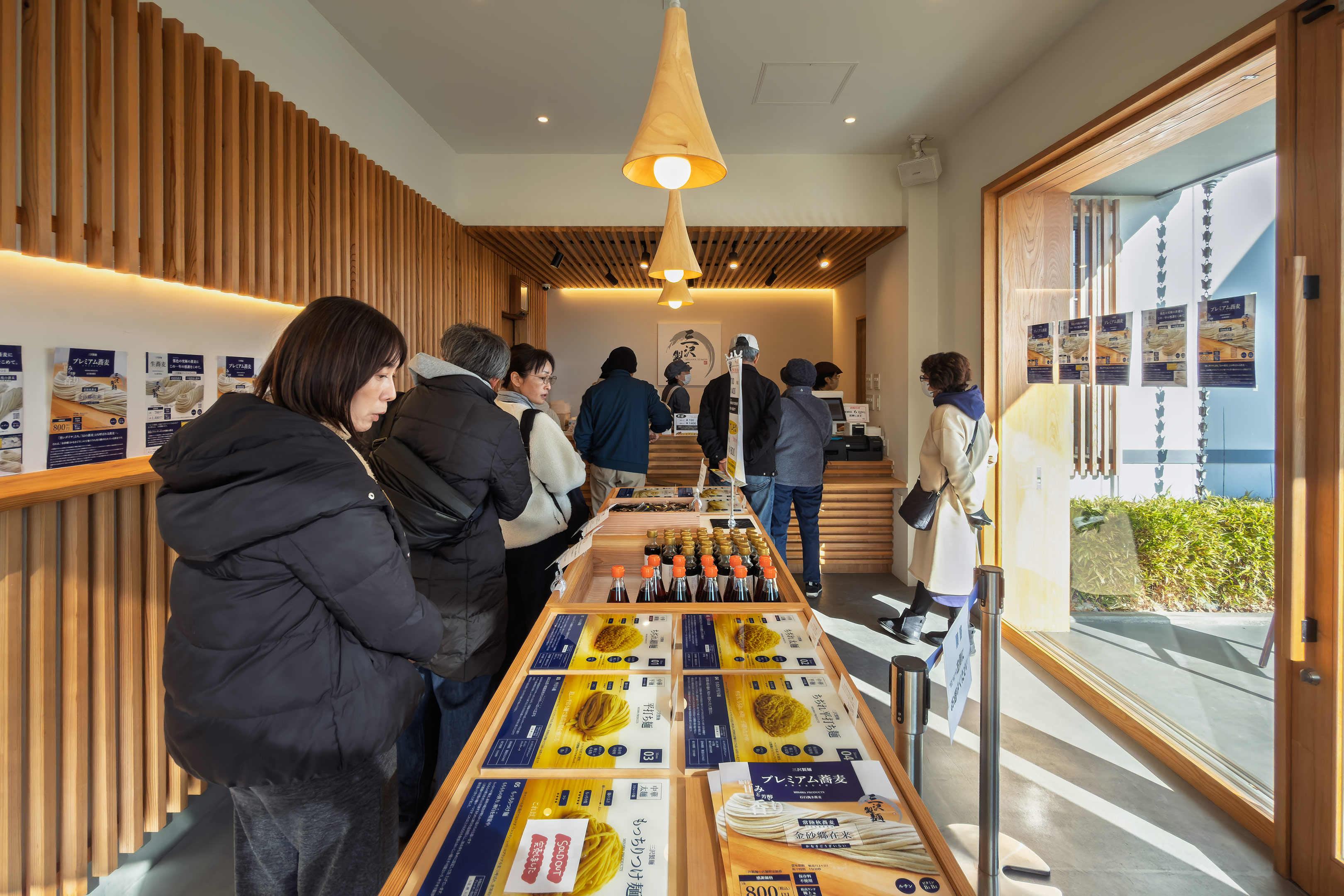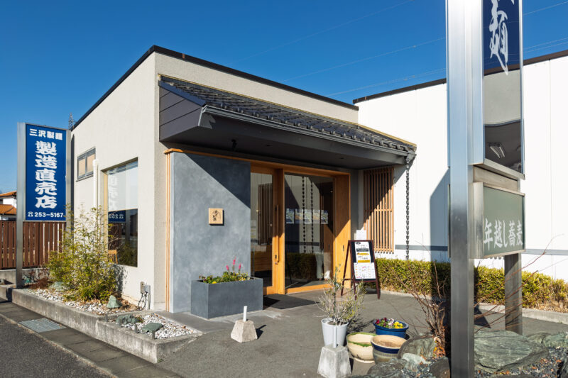 ここが工場なのだと思いますが、併設された直売店は大変クリーンな印象で一度は入ってみたくなる門構え。建物自体かなり新しく見えますから昔からここにあるわけではないのか、それとも新たに店舗のみ作ったのか...。ともあれ、看板にも ”年越し蕎麦” と書かれていますからひとまず入ってみることに。