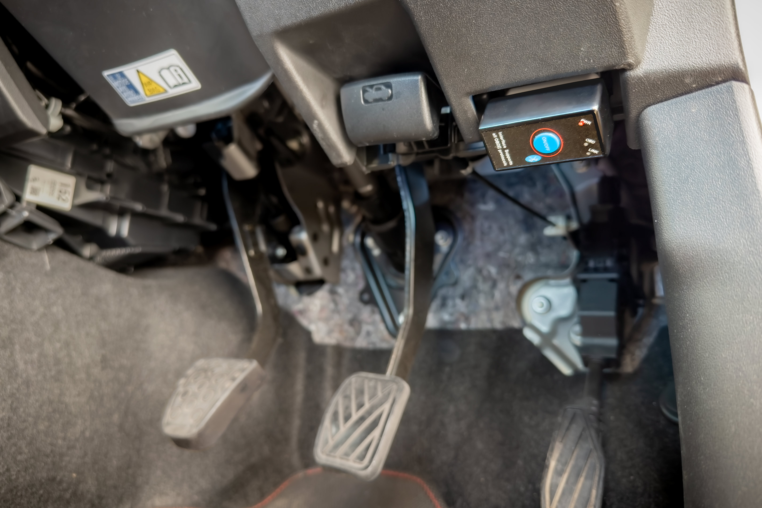 JB64ジムニーのOBD2端子は運転席足元に位置し、元々蓋も何も付いていませんから仮にもう少し奥行きのあるアダプターを購入した場合でも問題なく取り付けることが出来ると思います。