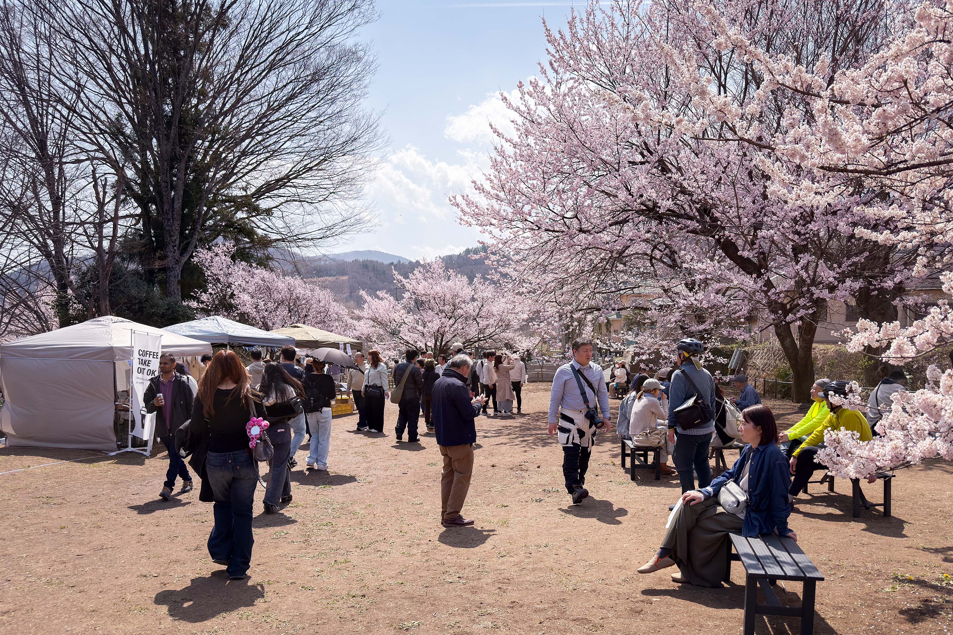 出店も一点集中ではなくいくつかのエリアに分かれて出店してくれている関係で人混みが集中せずゆったり過ごす事ができます。数は少ないですが、準備されたベンチに座ってお花見ができるなんてラッキーですね。