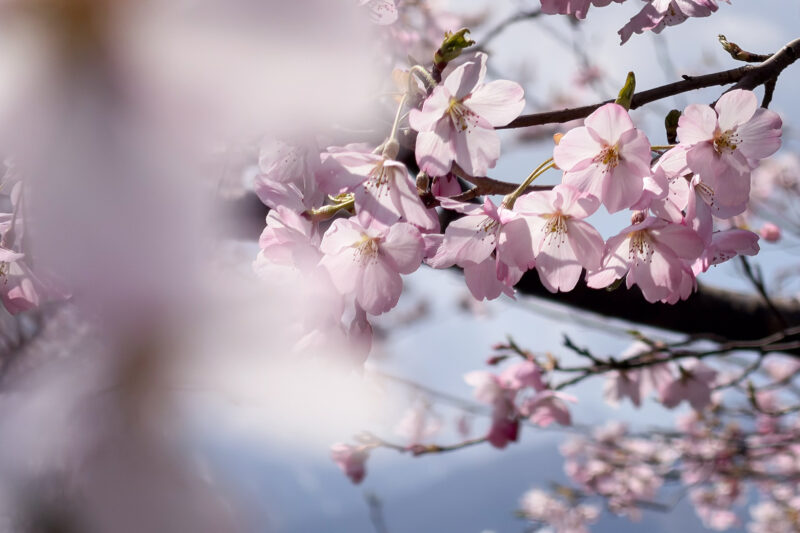 桜を写真に撮るならどんな撮り方が最適でしょうか? こんなふうにクローズアップで撮れば花のディテールはおさえられますが、満開の桜のあのほわっとした明るい雰囲気や、ふと視界に飛び込んできた桜の木の明るい印象を表現するには少々物足りない気がします。
