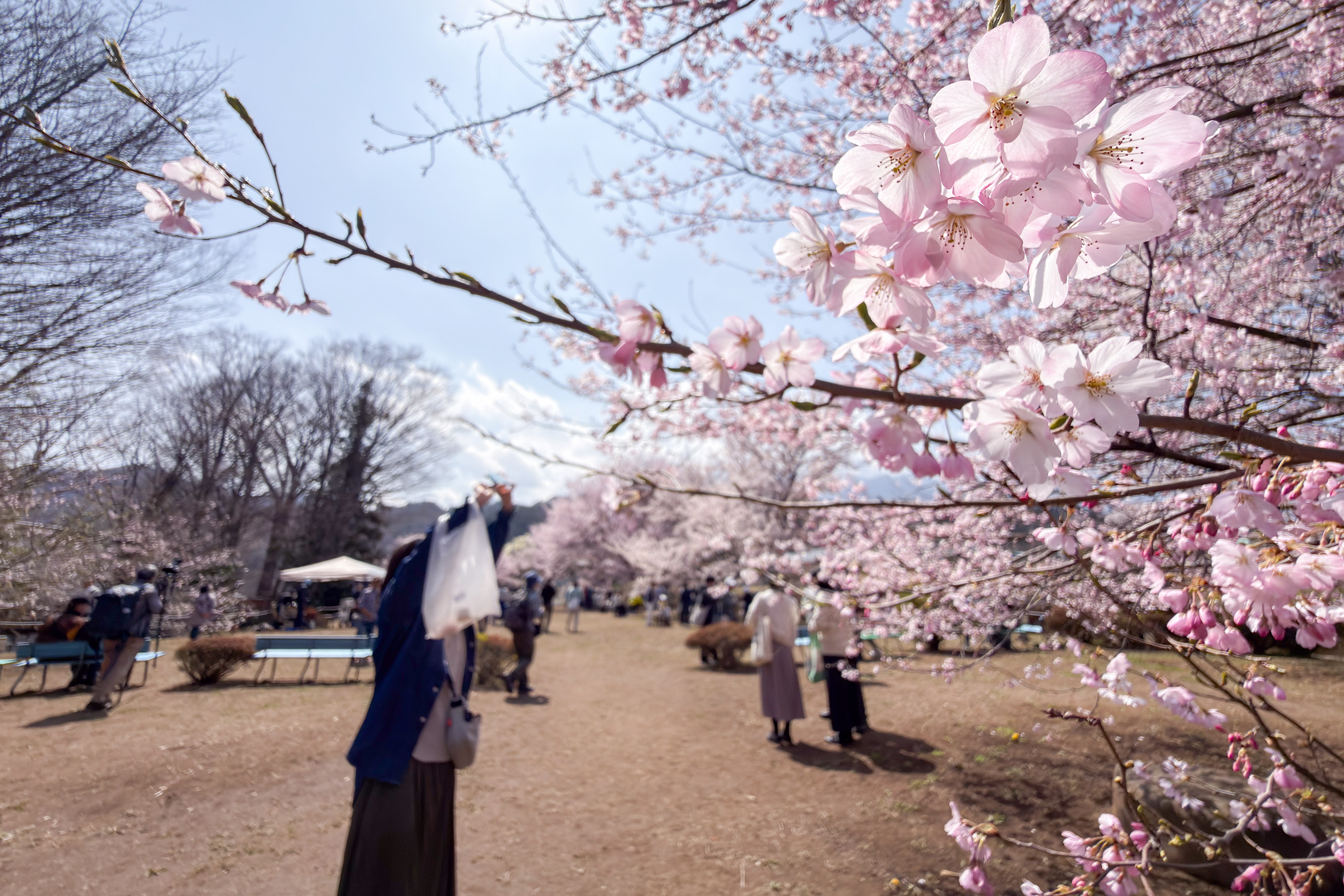 神代桜が有名とは言え、東京の上野公園のように人とのすれ違いが大変なほど窮屈にならずに済むのが地方のお花見。他は知りませんが、長野や山梨のお花見といったら本当に花を見ますが、東京のお花見はどちらかというと宴会を楽しむイメージですよね。アルコールを飲まない私的には前者の方が好みでして。